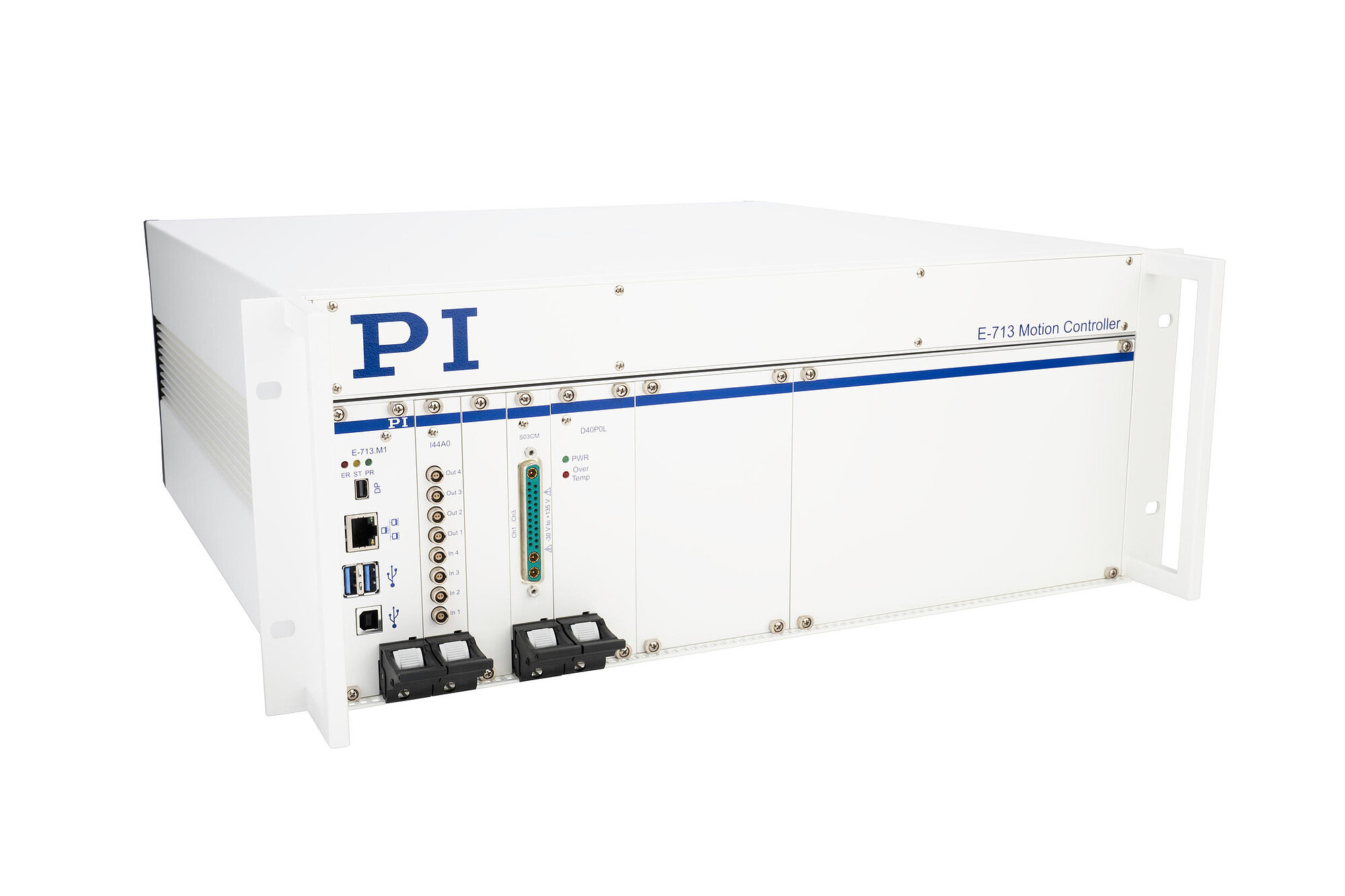 The E-713 Motion Controller supports piezo nanopositioning systems with capacitive sensors and coordinates motion for up to 6 logical axes. Depending on the controller model, axis motion is based on up to 8 piezo channels and 6 sensor channels. Users can easily command axis motions as the controller handles conversion between axis-related and channel-related values.