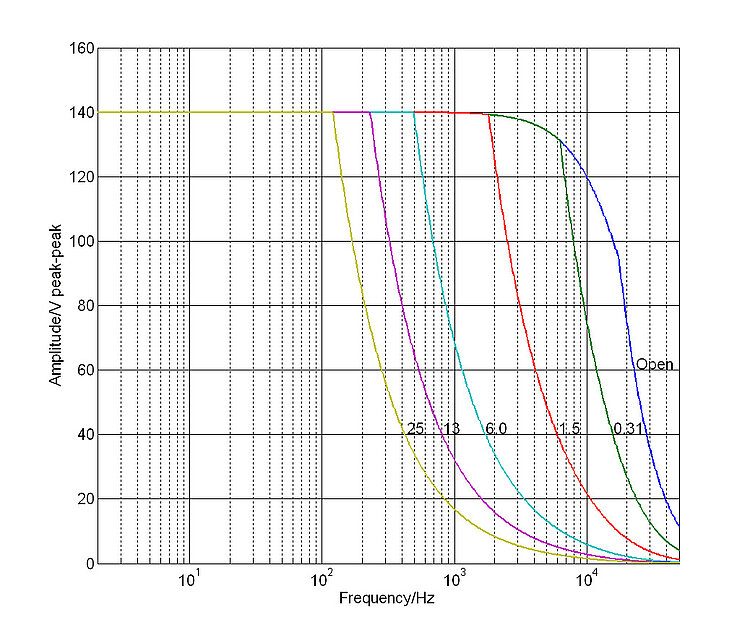 High peak current, 0.8 A continuous current. High bandwidth for high dynamics. Suitable for PICMA® piezo actuators with special contacts. Output voltage -30 to 130 V. Analog control. Evaluation of temperature sensor protects the piezo actuator against overheating.