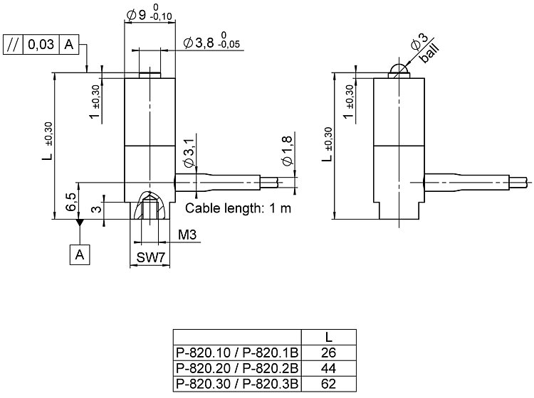 | Positioning | P-820.10 | P-820.1B | P-820.20 | P-820.30 | P-820.3B | Tolerance |