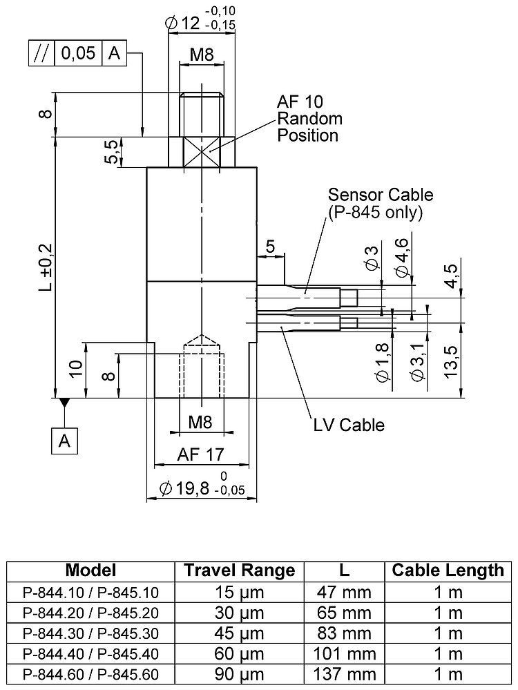 | Positioning | P-845.10 | P-845.20 | P-845.30 | P-845.40 | P-845.60 | Tolerance |