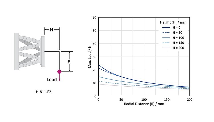 Note on maximum payload and maximum holding force: The specified values apply to the hexapod without the removable magnetic plate.