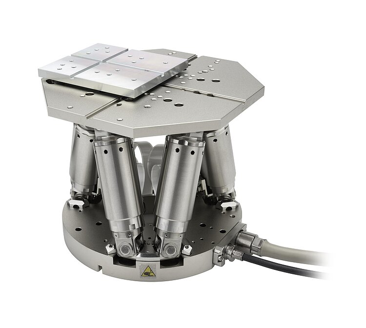 Miniature hexapod for optical alignment; removable magnetic plate; BLDC motor; 5 kg payload; 20 mm/s velocity; 0.5 m cable length. Connecting cables are not included in the scope of delivery and must be ordered separately.