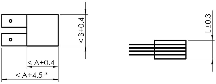| Length L | 2.2 mm | 4.4 mm | 2.2 mm | 4.4 mm | ±0,3 mm |