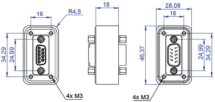 Flange | Aluminum alloy, gold iridite | Stainless steel 316L | |