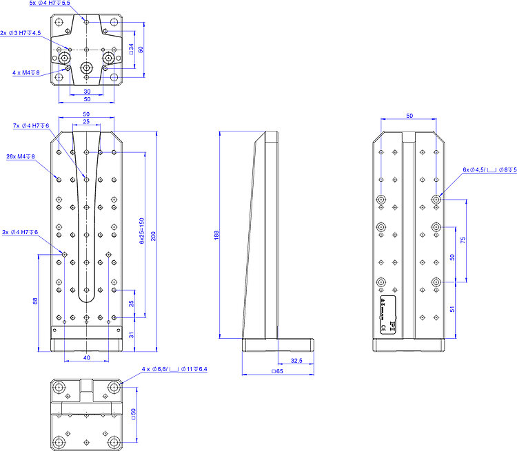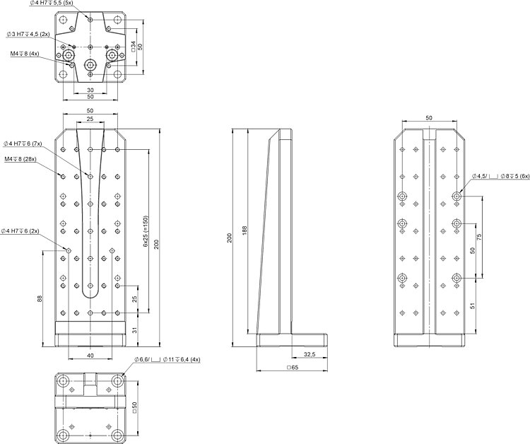 Adapter bracket for vertical mounting of positioners with up to 100 mm width and 300 mm length, vacuum compatible to 10-6 hPa