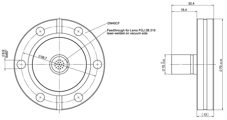 Vacuum feedthrough (drive and sensor signals), 19-pole LEMO (m/m), DN40CF