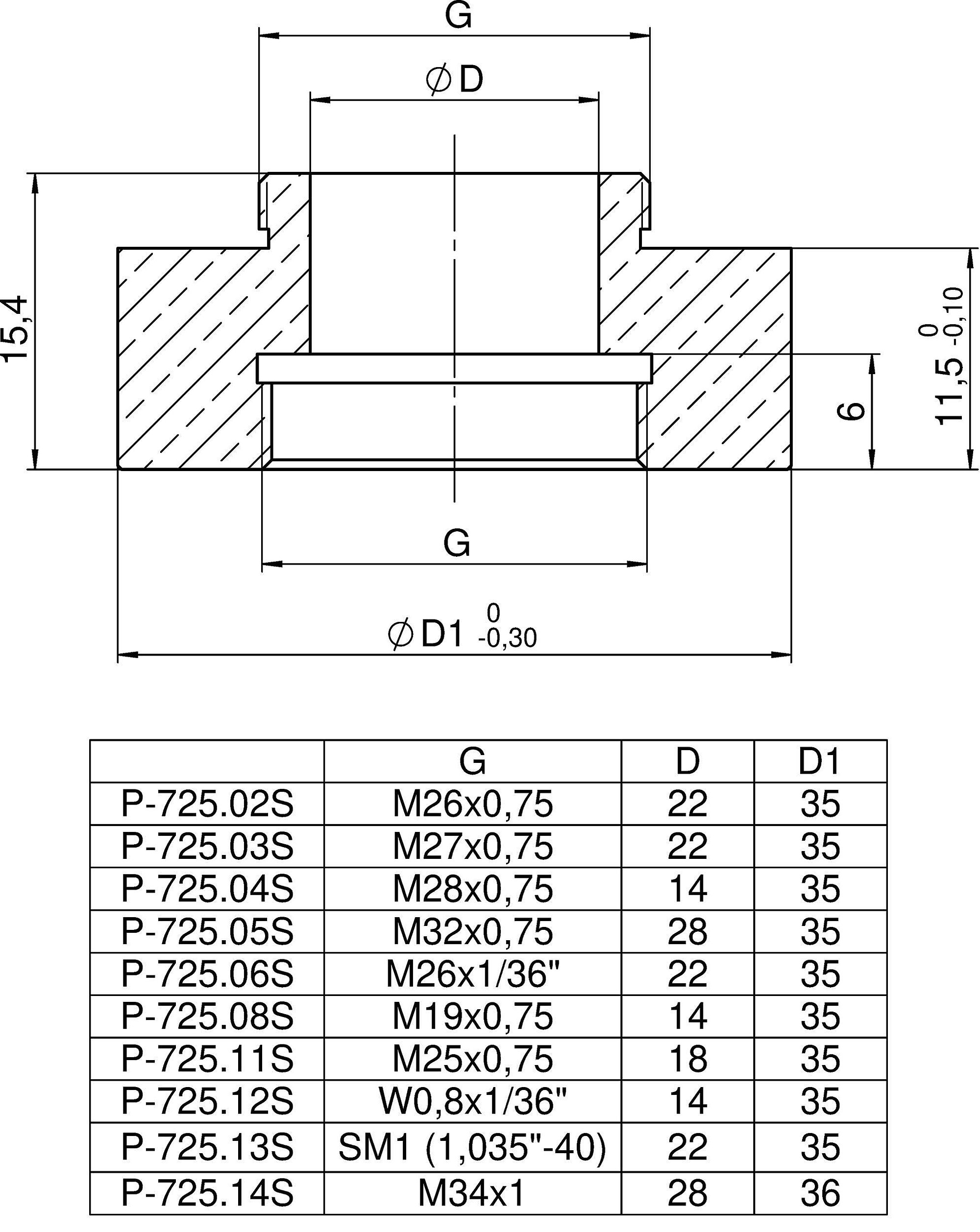Thread adapter for objective, M25 x 0.75, aperture diameter 22 mm