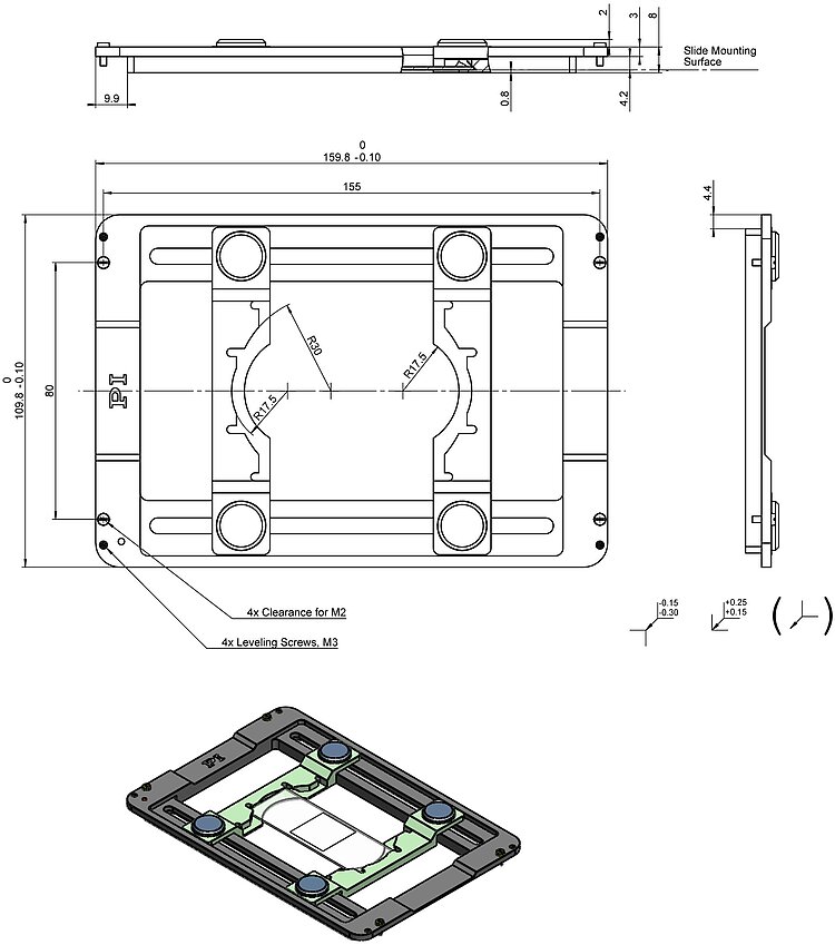 Universal holder for microscope slides and Petri dishes, for P-736.ZCN2S / P-736.ZRN2S PInano® Z piezo scanner systems (compatible with U-780.DNS systems for Nikon microscopes)