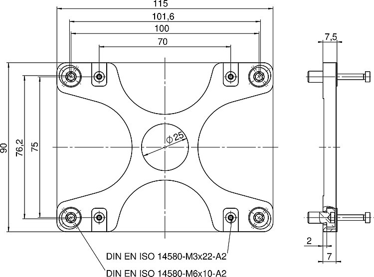 Adapter plate for mounting V-308 positioners on honeycomb tables (metric or imperial)