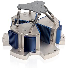 Les hexapodes robustes de PI positionnent les charges lourdes de manière sûre et précise, quel que soit l'orientation ou la situation d'installation. Cela est possible grâce à des joints universels spéciaux un choix de composants particulièrement rigides et sans jeu mécanique. Les applications possibles vont du mouvement de composants lourds au positionnement d'outils d'inspection dans l'industrie et la recherche, en passant par l'alignement de réflecteurs dans les télescopes.