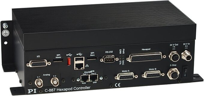 Le contrôleur d'hexapode permet un contrôle simple et intuitif des systèmes à architecture parallèle : toutes les positions cibles peuvent être commandées sous la forme de coordonnées cartésiennes. Le contrôleur réalise les calculs nécessaires à la commande de chaque actionneur et au mouvement souhaité de la plateforme.