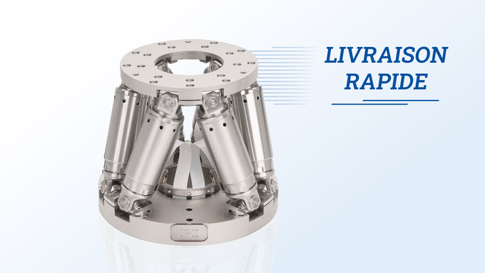 Découvrez notre large gamme d'hexapodes de précision pour des charges allant de 1 kg à 250 kg en version standard et une répétabilité allant jusqu'à ±0,06 µm. Des hexapodes de précision personnalisés peuvent même supporter des charges de plus de 2 000 kg.