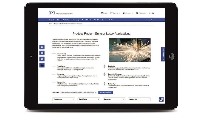 Sélectionnez le >> type de produit spécifiés par les axes de mouvement requis. Ou alors, utilisez la >> sélection en fonction de votre application pour définir les critères applicables à votre domaine d'utilisation.
